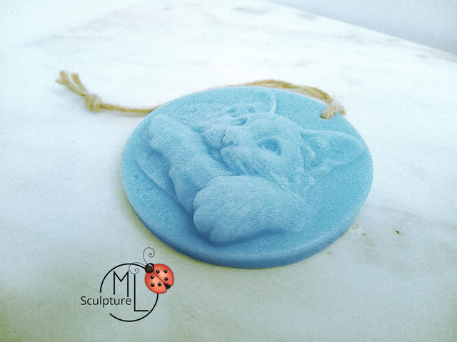 Fondant "CHAT" bleu, à suspendre - Parfum: Fleur de coton - Disponible aussi en rose et en vert